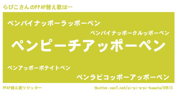 | 意味不明あだ名 | 『ペロリンらびこ』『永久保存らびこ』 |