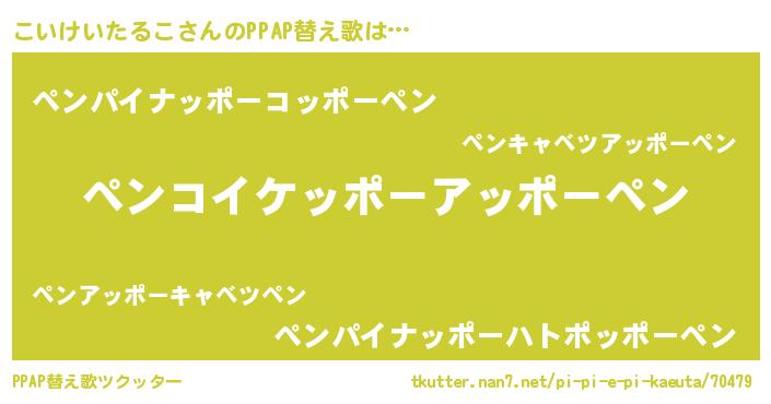 | 胡散臭い通販商品みたいなあだ名 | 『信頼と実績のサプリメント…その名も「こいけいたるこ」』 |