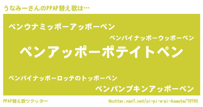 | 意味不明あだ名 | 『自称うなみー』『うなみーフォーエバー』 |
