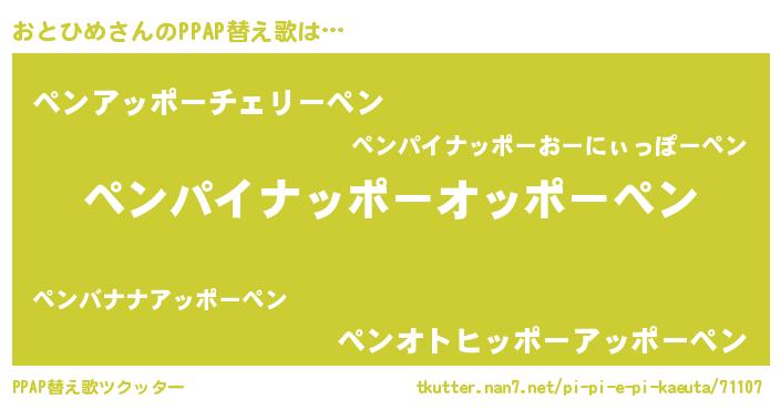 | ピコ太郎風あだ名 | 『ピコオ郎』『ピオ一郎』『オト一郎』 |