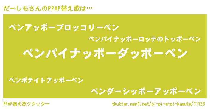 | 意味不明あだ名 | 『自称だーしも』『永久保存だーしも』 |