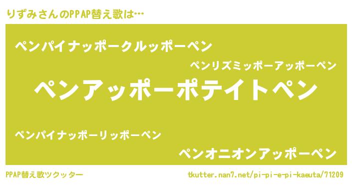 | 肩書あだ名 | 『りずみ国家主席』『りずみ少尉』 |