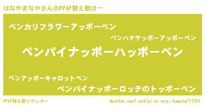 | ピコ太郎風あだ名 | 『ピコハ郎』『ハコ史郎』『ハハ太郎』 |