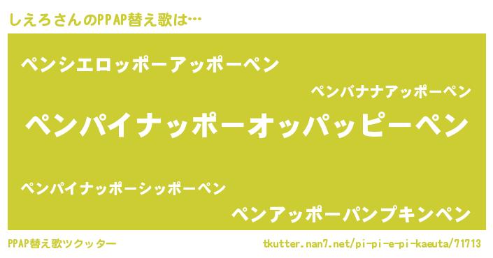 | ピコ太郎風あだ名 | 『シシ太郎』『シエ太郎』『ピシ太郎』 |