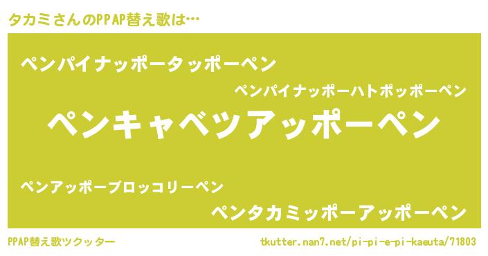 | ピコ太郎風あだ名 | 『タコ四郎』『ピコタ郎』『タカ十郎』 |