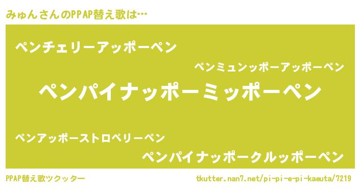 | 料理風あだ名 | 『みゅんのカルパッチョ風』 |