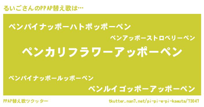 | ピコ太郎風あだ名 | 『ルコ二郎』『ルル太郎』『ルイ八郎』 |