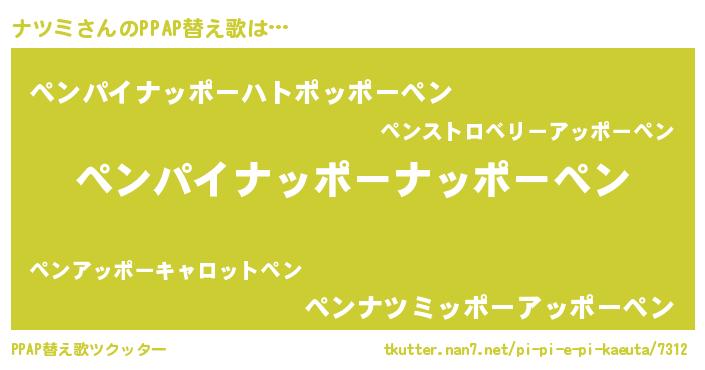 | ピコ太郎風あだ名 | 『ピコナ郎』『ナナ太郎』『ナツ二郎』 |