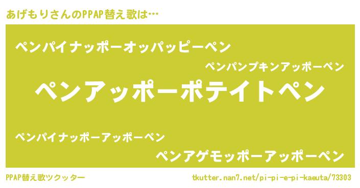 | ピコ太郎風あだ名 | 『ピア五郎』『アア太郎』『アゲ六郎』 |