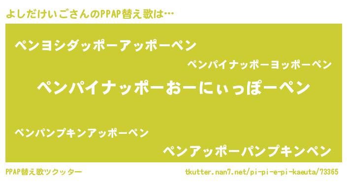 | ピコ太郎風あだ名 | 『ヨヨ太郎』『ヨシ三郎』『ピヨ二郎』 |