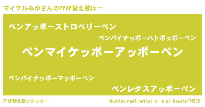 | 欧米人風あだ名 | 『ウサインマイケルみゆ』 |