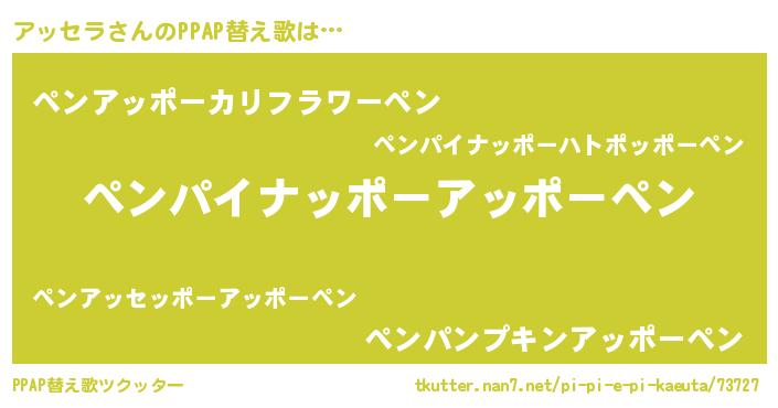 | 意味不明あだ名 | 『永久保存アッセラ』『自称アッセラ』 |