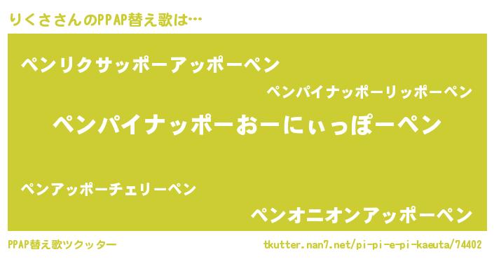 | ピコ太郎風あだ名 | 『リリ太郎』『リク四郎』『リコ太郎』 |