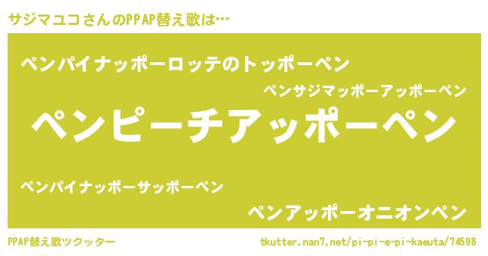 | ピコ太郎風あだ名 | 『サコ次郎』『ササ太郎』『ピサ六郎』 |