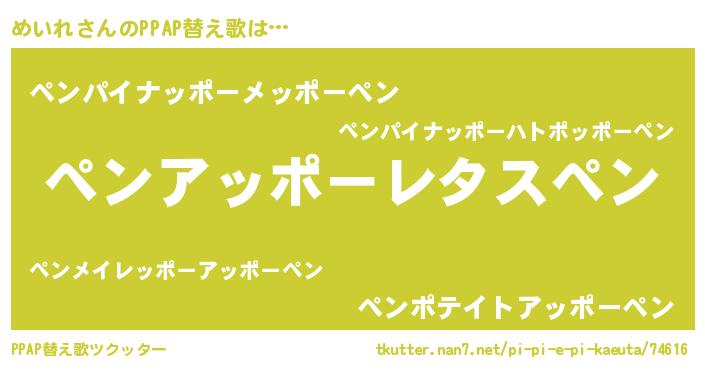 | 意味不明あだ名 | 『めいれフォーエバー』『自称めいれ』 |
