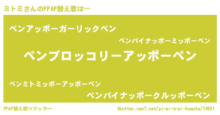 | ピコ太郎風あだ名 | 『ミコ十郎』『ピミ八郎』『ミミ太郎』 |