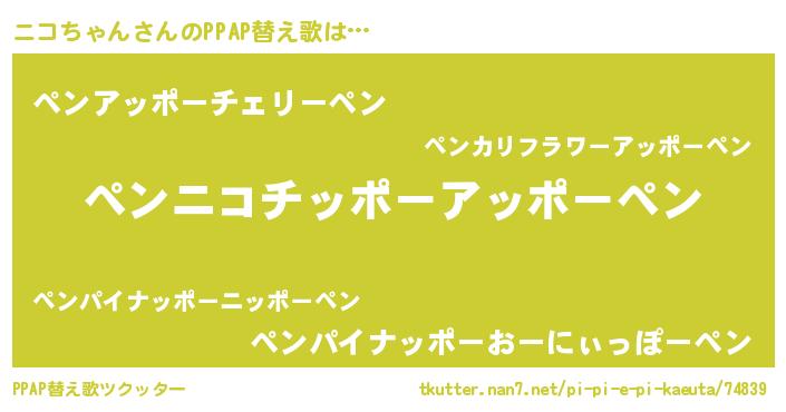 | ピコ太郎風あだ名 | 『ニコ次郎』『ピニ三郎』『ニニ太郎』 |