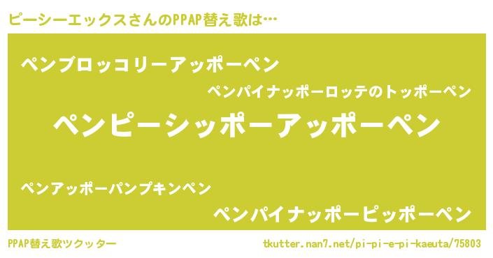 | 男性向けラノベタイトル風あだ名 | 『ピーシーエックスの嫁は女の子じゃないと思った?』 |
