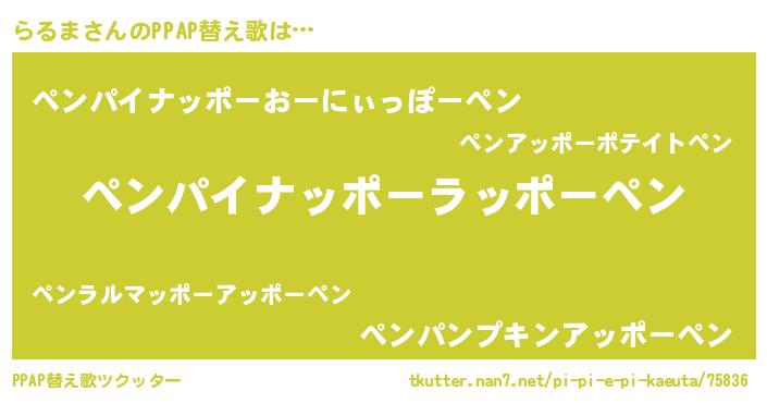 | ヘコむあだ名 | 『らるま(遠い目)』『らるっふぃ~』 |