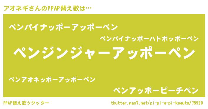 | 意味不明あだ名 | 『ペロリンアオネギ』『永久保存アオネギ』 |