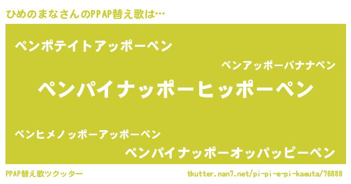 | 料理風あだ名 | 『ひめのまなのカルパッチョ風』 |