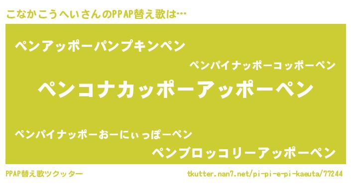 | 胡散臭い通販商品みたいなあだ名 | 『信頼と実績のサプリメント…その名も「こなかこうへい」』 |