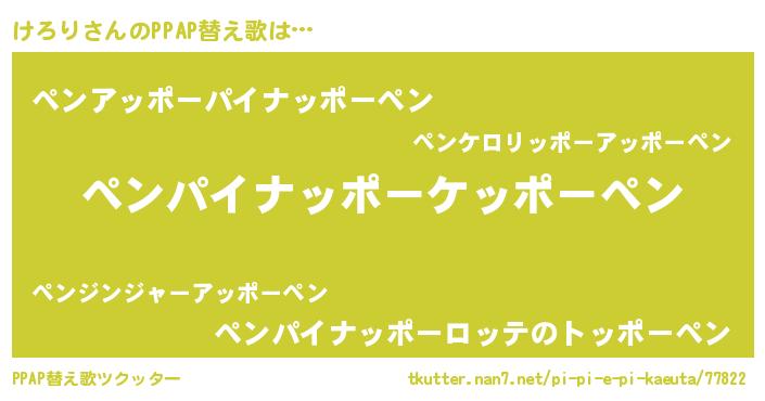 | ヒーロー風カッコイイあだ名 | 『ネオケロリ』『ウルトラけろりマン』 |