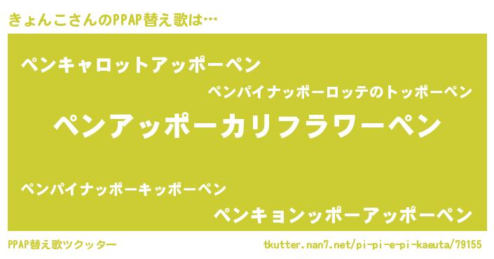 | 男性向けラノベタイトル風あだ名 | 『Re:きょんこから始める異世界生活』 |