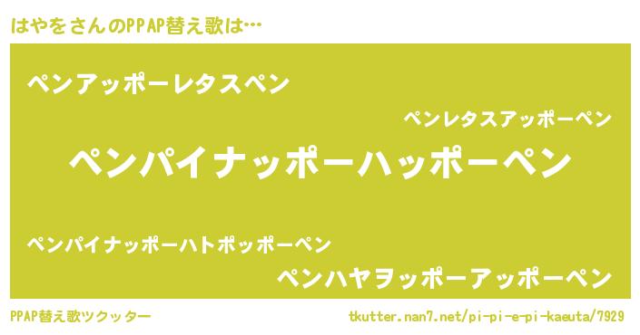 | ピコ太郎風あだ名 | 『ピコハ郎』『ピハ四郎』『ハヤ史郎』 |