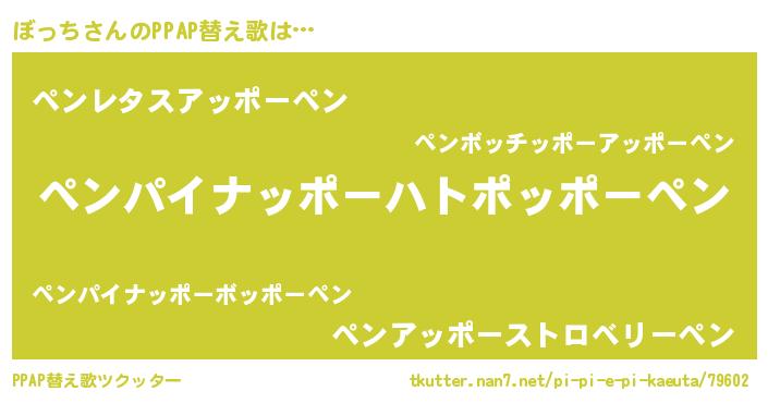 | ピコ太郎風あだ名 | 『ボボ太郎』『ボコ史郎』『ピボ一郎』 |