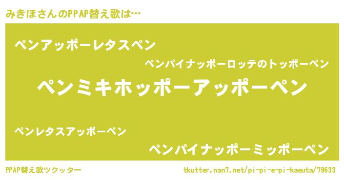 | ピコ太郎風あだ名 | 『ミキ十郎』『ピミ四郎』『ピコミ郎』 |