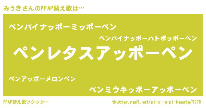 | ピコ太郎風あだ名 | 『ミコ史郎』『ピコミ郎』『ミウ次郎』 |