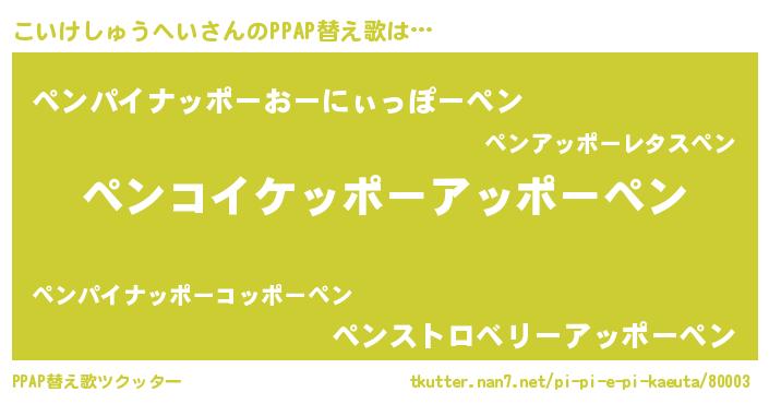 | 胡散臭い通販商品みたいなあだ名 | 『全米が絶賛したサプリメント…その名も「こいけしゅうへい」』 |