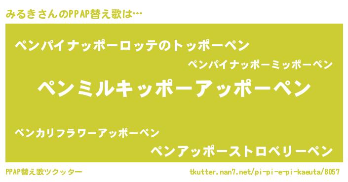 | ピコ太郎風あだ名 | 『ミル四郎』『ミミ太郎』『ピミ一郎』 |