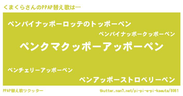 | ピコ太郎風あだ名 | 『クマ六郎』『クク太郎』『ピク二郎』 |