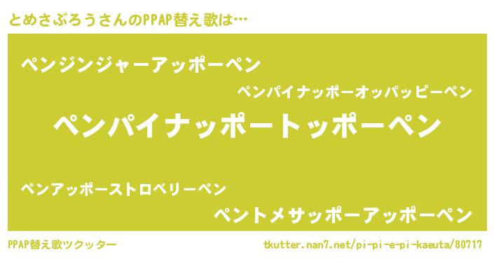| ピコ太郎風あだ名 | 『ピコト郎』『トコ六郎』『トメ十郎』 |