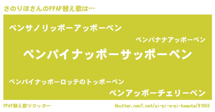 | ピコ太郎風あだ名 | 『ピコサ郎』『サノ六郎』『ピサ史郎』 |