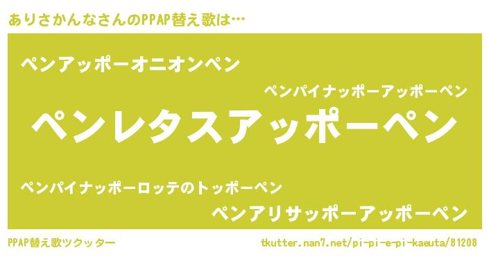 | 肩書あだ名 | 『ありさかんな総統』『ありさかんな船長』 |