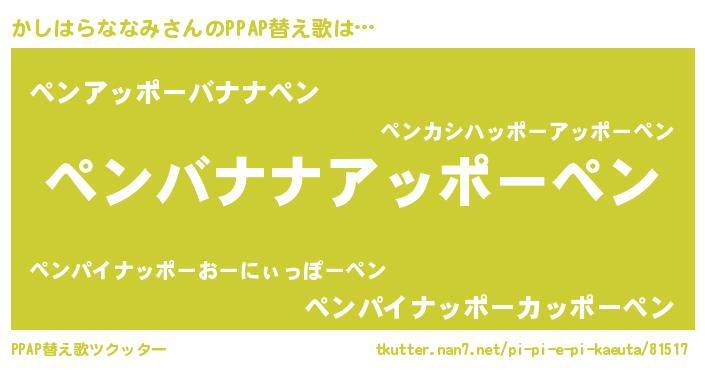 | 意味不明あだ名 | 『しいたけ科かしはらななみ属』 |