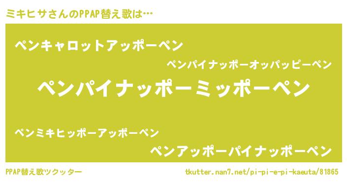 | ピコ太郎風あだ名 | 『ピコミ郎』『ミコ八郎』『ピミ太郎』 |