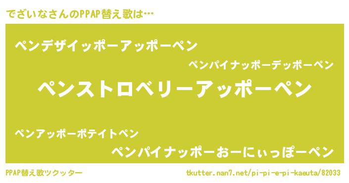 | ピコ太郎風あだ名 | 『デコ一郎』『デザ次郎』『デデ太郎』 |