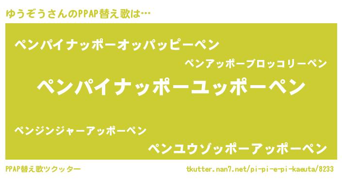 | ピコ太郎風あだ名 | 『ピコユ郎』『ユユ太郎』『ユウ十郎』 |