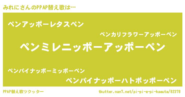 | 欧米人風あだ名 | 『ウサインみれに』『アンジェラ・みれに』 |