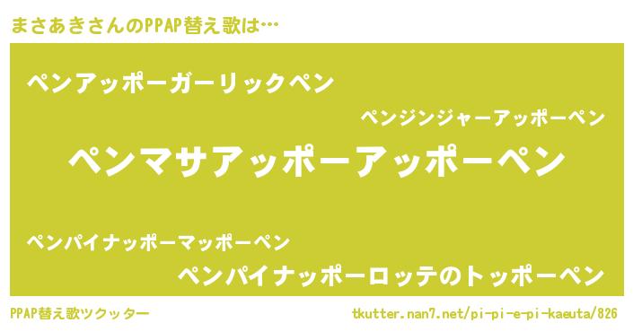 | ピコ太郎風あだ名 | 『マサ五郎』『ピマ十郎』『ママ太郎』 |