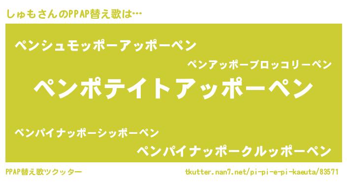| 意味不明あだ名 | 『ペロリンしゅも』『自称しゅも』 |