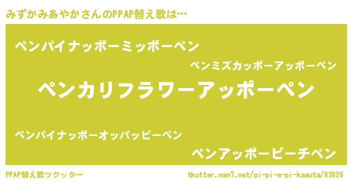 | ヘコむあだ名 | 『みずにゅー』『みずかみあやか(遠い目)』 |