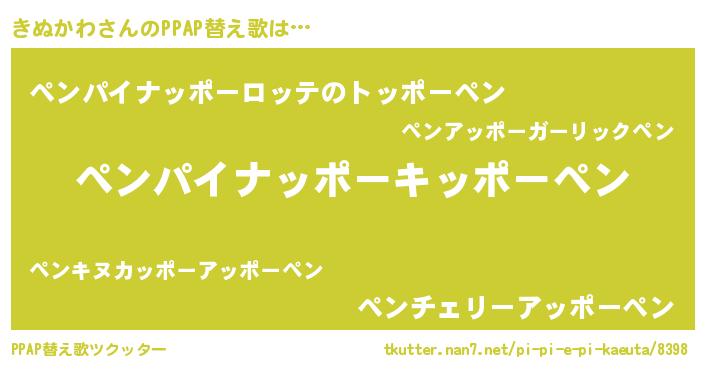 | 意味不明あだ名 | 『永久保存きぬかわ』『ペロリンきぬかわ』 |
