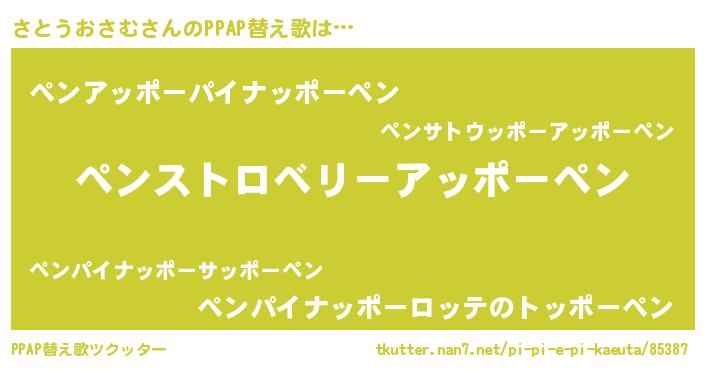 | 欧米人風あだ名 | 『アンジェラ・さとうおさむ』 |