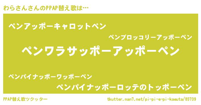 | 欧米人風あだ名 | 『ウサインわらさん』『ダニエルわらさん』 |