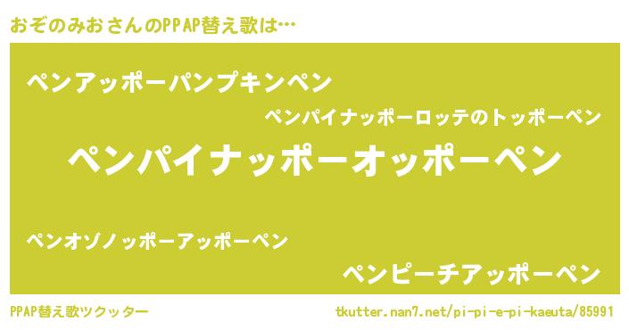 | 胡散臭い通販商品みたいなあだ名 | 『来世でも幸せになれる水素水…その名も「おぞのみお」』 |